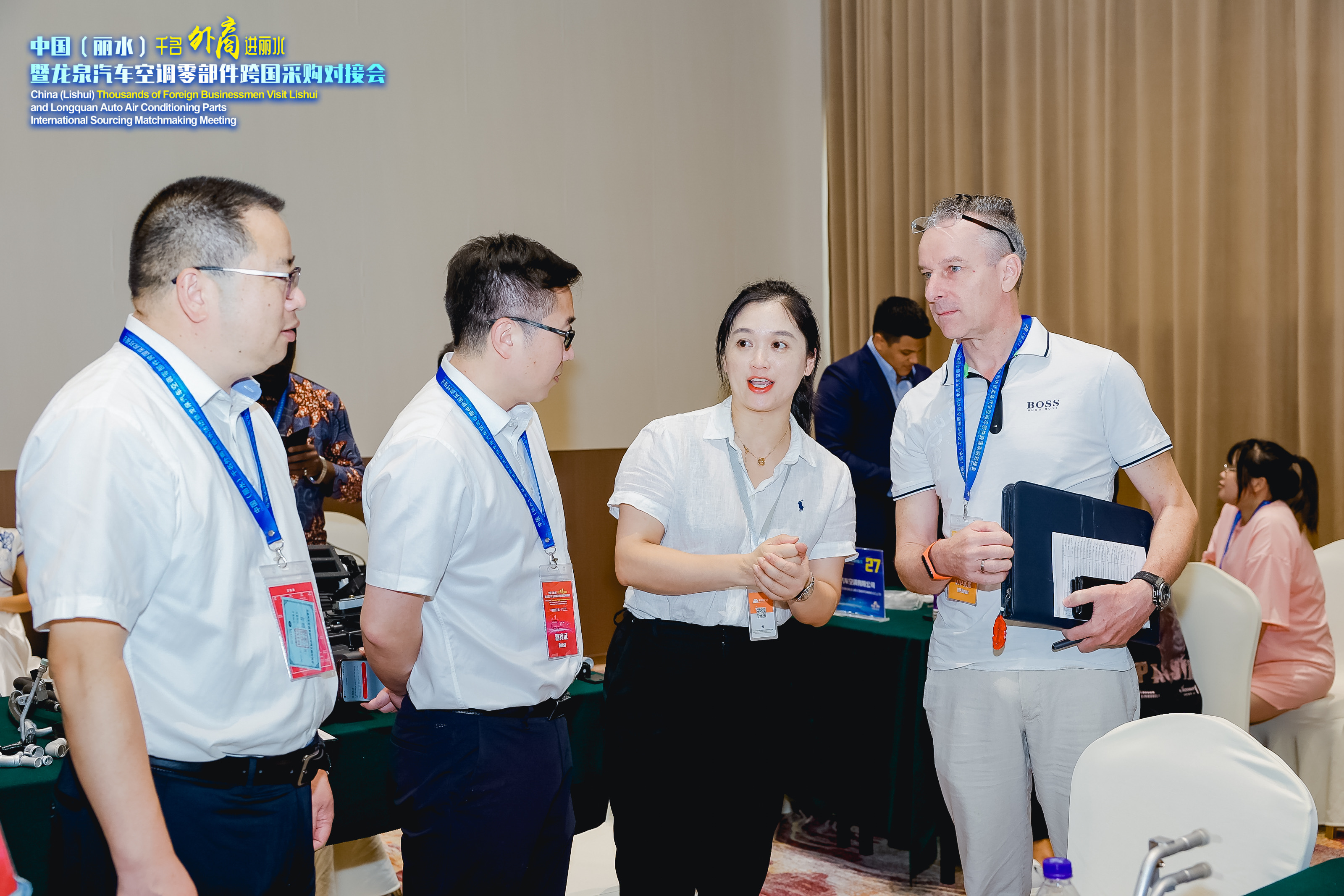قبل حفل الافتتاح، قام المشترين الأجانب بزيارة مجمع الخدمات الابتكارية لصناعة تكييف السيارات في لونغ تشيوان ، وزاروا ثلاثة شركات محلية وهي "شايك لتجارة قطع غيار السيارات في زيجيانغ" و "شركة زيجيانغ للابتكار في تكييف السيارات" و "شركة زيجيانغ سانتيان للضواغط في تكييف السيارات". لقد أبدى الأجانب انطباعًا قويًا بورشة إنتاج قطع غيار السيارات الذكية في لونغ تشيوان وبمجموعة المنتجات عالية الجودة. يأملون في أن يكون لديهم في المستقبل فرص تجارية مستدامة ومتبادلة المنفعة مع لونغ تشيوان.