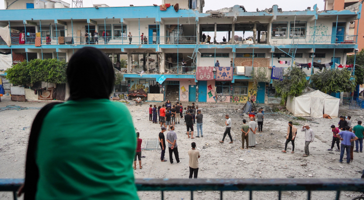 فلسطينيون في إحدى مدارس الأونروا التي أصبحت مراكز للإيواء في قطاع غزة