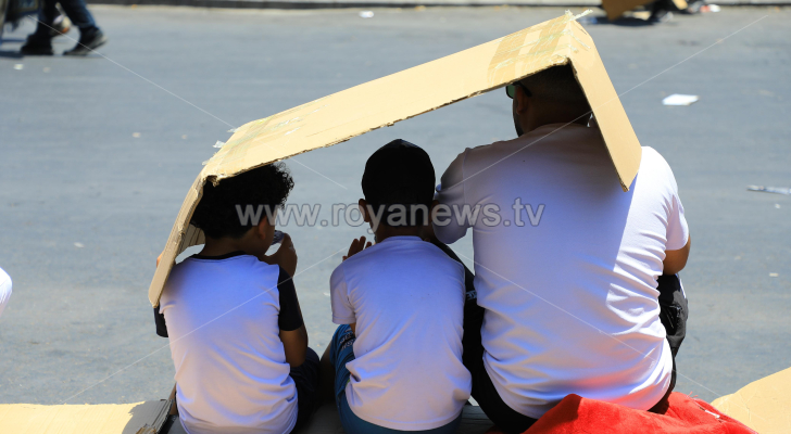 مواطن يجلس برفقة أبنائه تحت الأجواء المشمسة