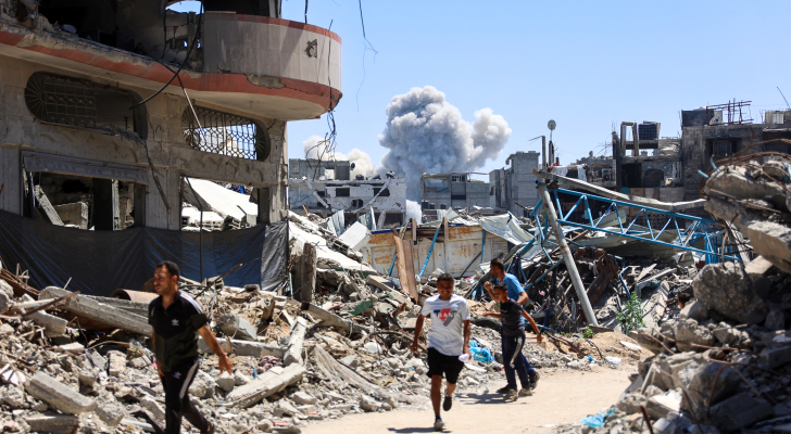 تصاعد الدخان فوق ضاحية الشجاعية الشرقية في مدينة غزة بعد قصف الاحتلال