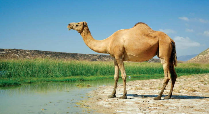 أظهر مقطع فيديو متداول لجوء أحد الجمال في محافظة معان إلى بئر ماء هربا من درجات الحرارة المرتفعة.