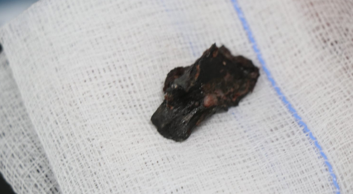 الشظية التي استخرجت من جمجمة الطفل