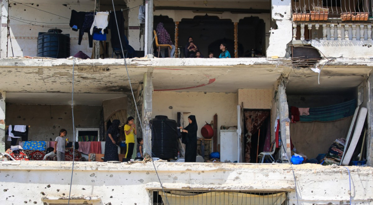 عائلات فلسطينية تعود إلى منازلها المدمرة في مبنى سكني تعرض لقصف الاحتلال في مدينة خان يونس