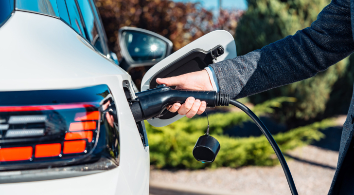 شخص يقوم بشحن مركبة كهربائية