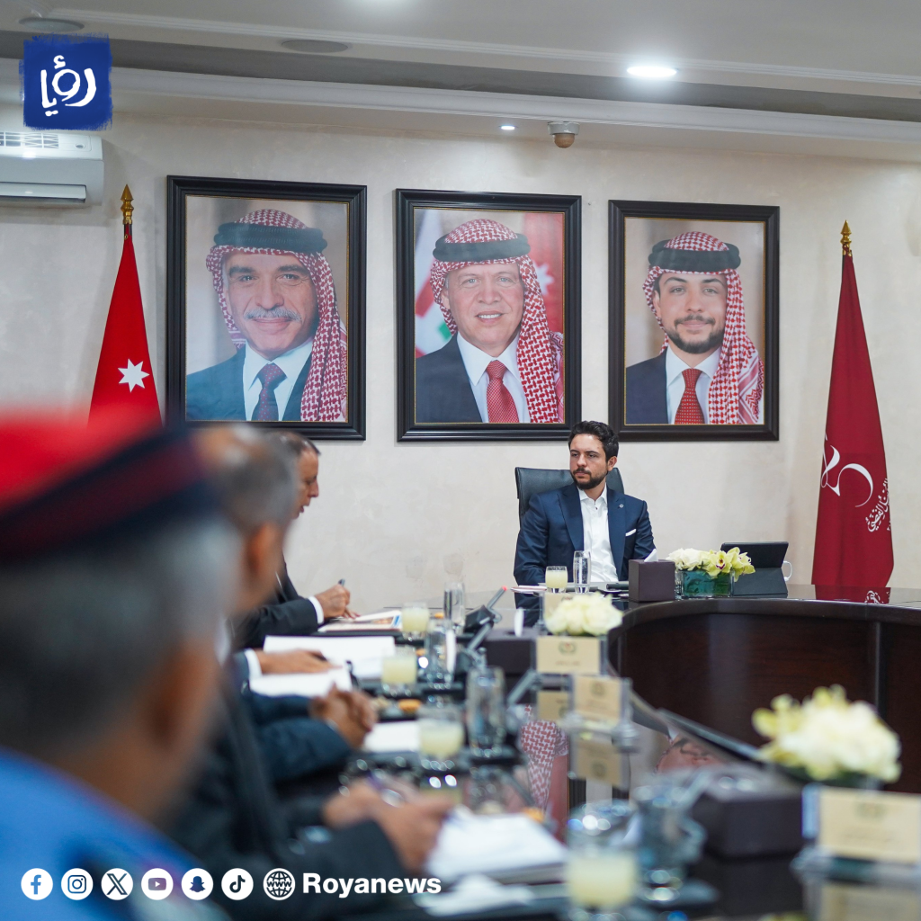 واستمع سمو ولي العهد إلى شرح من وزير الداخلية مازن الفراية، عن سير العمل في مديريات الوزارة ضمن مسؤوليات عملها.
