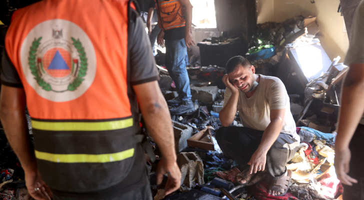 فلسطينيون بين ركام منزل مدمر في حي الدرج بمدينة غزة