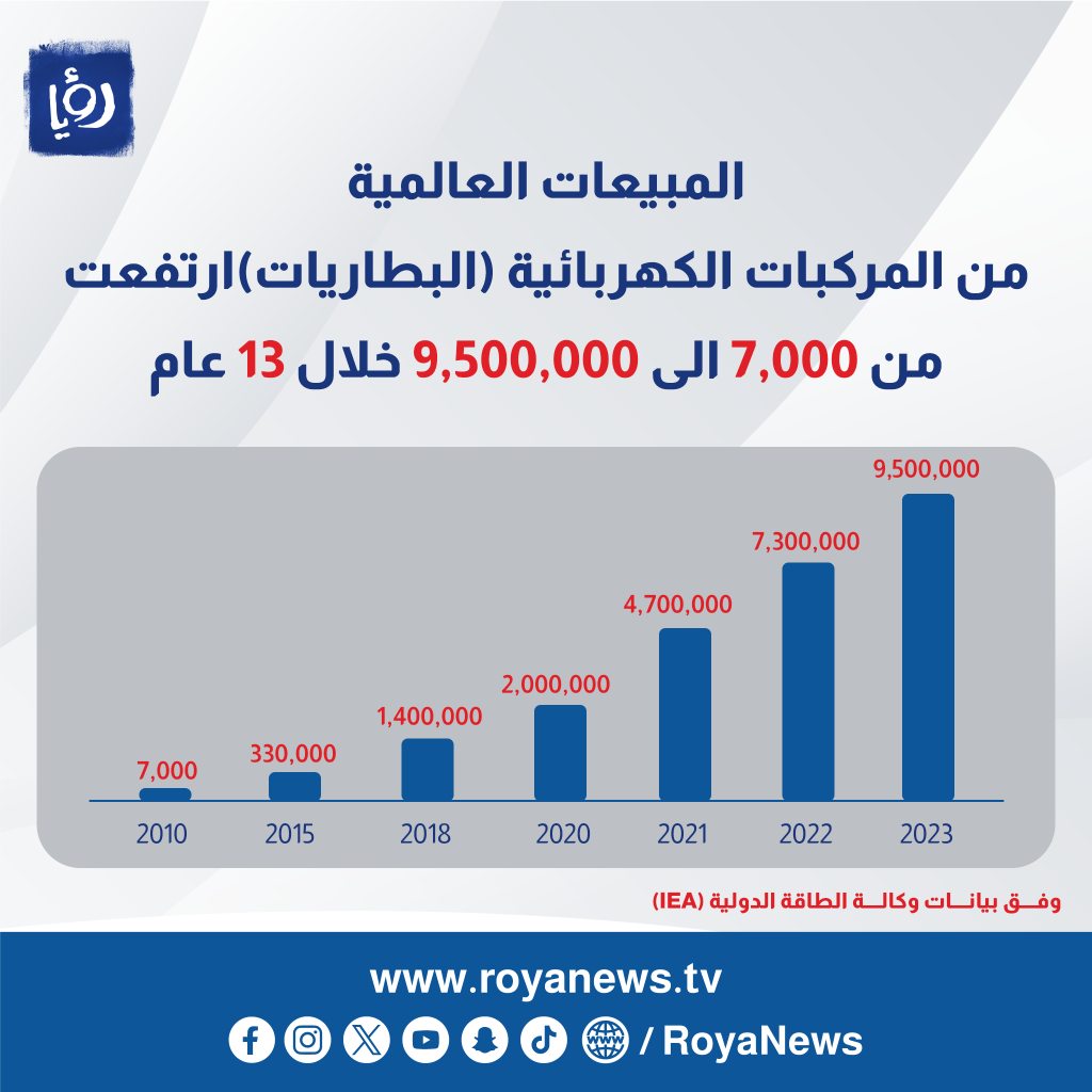 وأوضح التقرير أن هذا التحول مدفوع بتزايد الوعي البيئي وتقليل الانبعاثات الكربونية، مع ارتفاع المبيعات العالمية لهذه المركبات لتصل إلى 9.5 مليون سيارة في عام 2023، مقارنة بـ 7 آلاف فقط في عام 2010.
