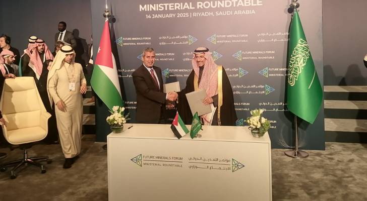 وقع وزير الطاقة والثروة المعدنية صالح الخرابشة ونظيره السعودي وزير الصناعة والثروة المعدنية بندر بن إبراهيم الخريف، مذكرة تفاهم لتعزيز التعاون المشترك في مجال الثروة المعدنية والتعدين، وذلك على هامش "مؤتمر التعدين الدولي بنسخته الرابعة" الذي يُعقد في الرياض تحت رعاية خادم الحرمين الشريفين الملك سلمان بن عبد العزيز.